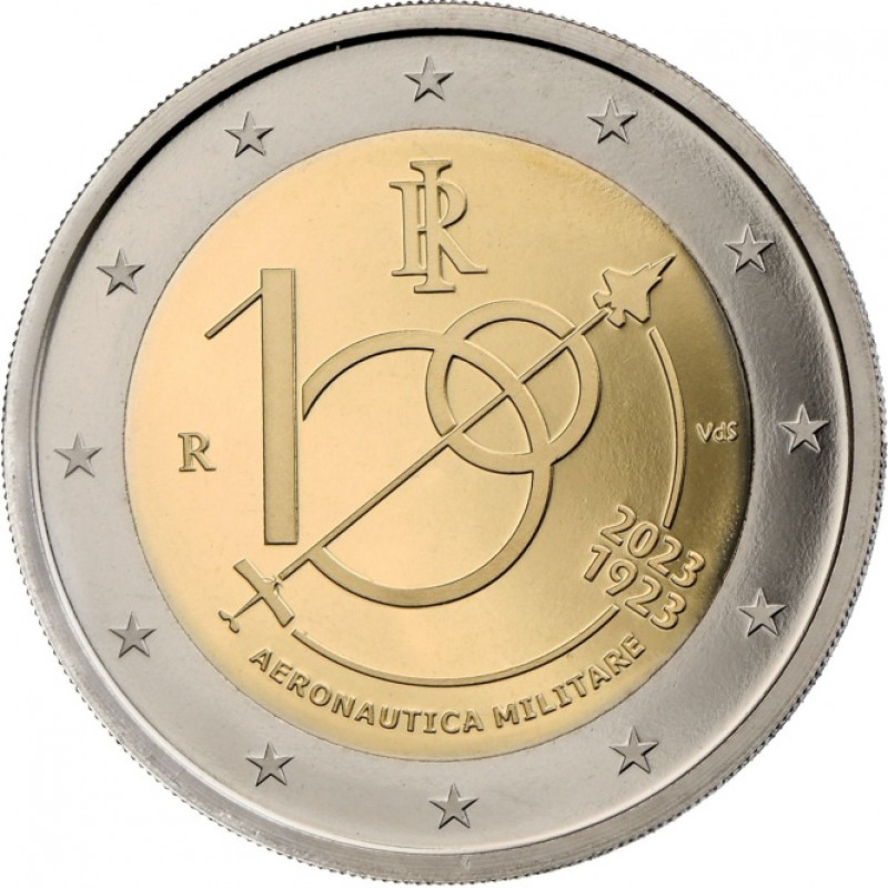 Италия 2 евро 2023 «100 лет Военно-воздушным силам Италии», Биметалл