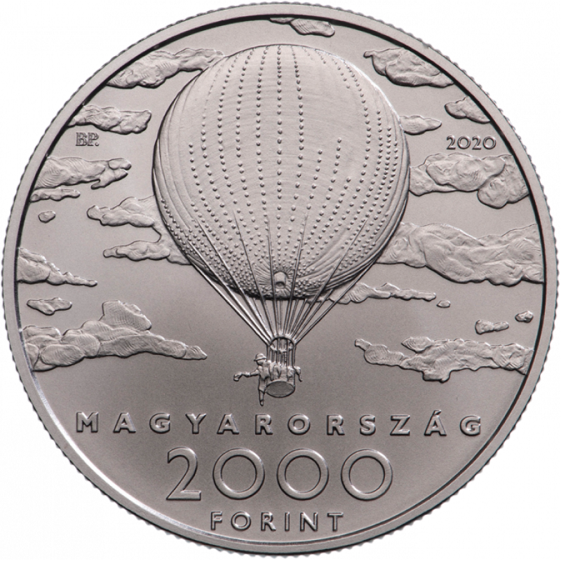 Аверс украшен картиной «Воздушный шар» Пала Синьеи-Мерше. Под изображением указаны страна-эмитент MAGYARORSZÁG и номинал 2000 FORINT, справа год выпуска 2020, слева — знак монетного двора BP.